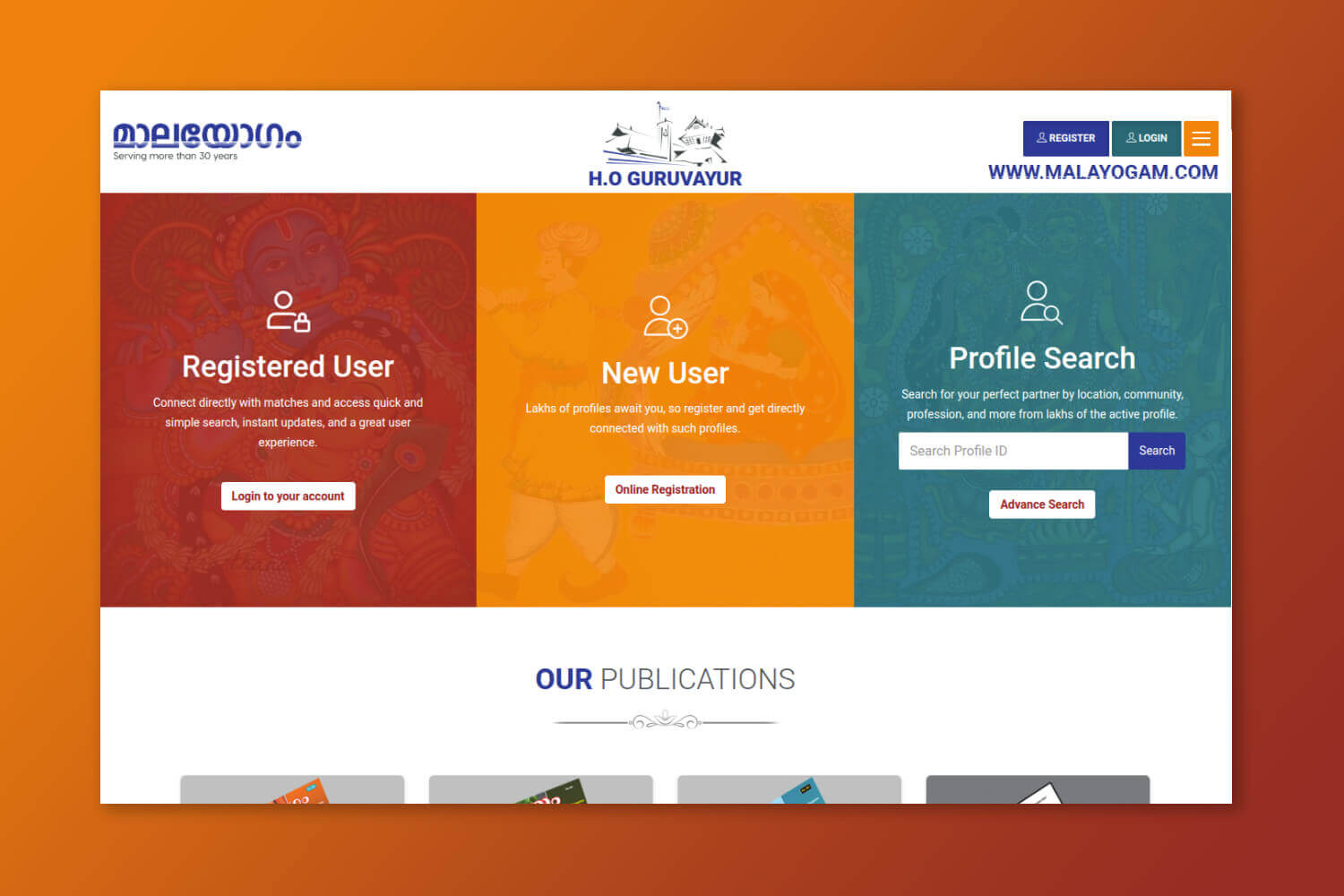 Guruvayoor Malayogam is the most trusted matrimony databank in South India, with a huge base of satisfied relationships. Malayogam with more than 33 years of successful matchmaking history is trusted for its highly professional services and authenticity in the profiles that it delivers. We make matchmaking a hearty and satisfying experience by providing high quality and easy to use filtering options to find and reach that special partner.