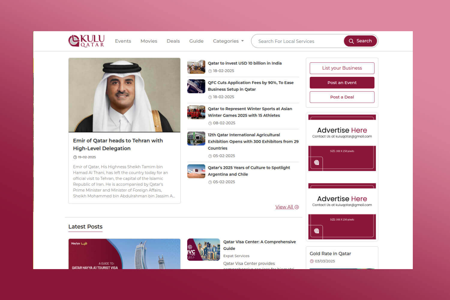 Kuluqatar.com is a Qatar-based Online Portal that provides information on businesses, events, movies... View Details