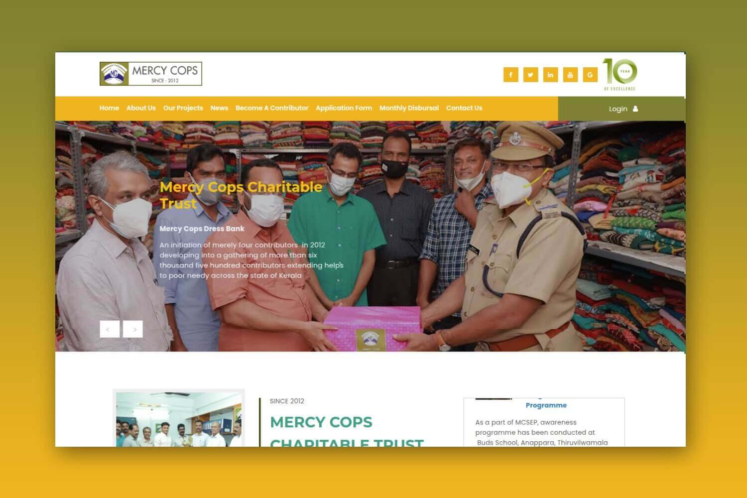 Mercy Cops is a non-profit, non-sectarian, non-religious, charitable trust formed on 15th August 2012 at Poothole, Thrissur district, Kerala and registered under the Indian Trusts Act, 1882 (Reg. No.325/IV/2014). It was set up in order to tackle the problems of poverty in Kerala. From its humble origin as a unity of 4 contributors focused to help the people suffering from serious illnesses, it has grown rapidly, and now its projects cover a wide range of activities located in throughout Kerala.